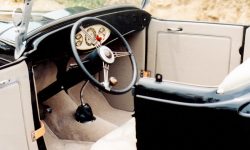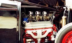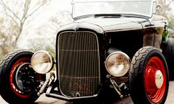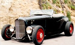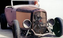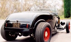 FRAME Original Ford with many modifications WHEEL BASE 109″ MODIFICATIONS Stretched and pinched front rails, narrowed and raised rear section, custom X members REAR END / RATI0 9″ Ford narrowed 3.50 gear ratio REAR SHOCKS Aldan coil overs REAR BRAKES OEM Ford drum FRONT SUSPENSION Super bell I-beam 4″ drop FRONT FRONT BRAKES 40 Ford drum FRONT WHEEL MAKE / SlZE Kelsey Hayes 4×16 REAR WHEEL MAKE / SIZE Kelsey Hayes widened 8 x 16 FRONT TIRE Dunlop MT-90 / 16 REAR TIRE BFG 275/65/16 GAS TANK 20 gallon custom ENGINEMAKE Chevy DISPLACEMENT 327 cu. in. VALVE COVERS Early Cal Custom ribbed MANIFOLD / lNDUCTION Edelbrock 3-2 GM Rochester carbs HEADERS Sanderson cast iron EXHAUST / MUFFLERS 2″ aluminized with Flowmasters TRANSMISSIONMAKE Chevy 350 turbo CONVERTER Stock SHIFTER Gennie swan neck BODYBODY STYLE / MATERIAL Roadster/ Steel BODY MANUFACTURER Ford BODY MODIFICATIONS Qtr. panels tubbed 2″, rear panels extended, frenched plate, custom fabricated firewall and floor pans HOOD Stretched 3″, sectioned at lower edge, louver pattern re-worked GRILLE Notched to fit between frame horns GRILLE INSERT Original Ford RADIATOR Brass Works BODY WORK Owner- Dave Iversen PAINT TYPE / COLOR PPG Deltron Black PAINTER Joe @ Hot Rod and Custom Staff PIN STRIPING Hot Dog Pete HEADLIGHTS 32’commercial TAILLIGHTS 47’Kaiser INTERIORMATERIAL / COLOR Vinyl / Tan CARPET Tan DOOR HANDLES Original WINDOWS DASHBOARD Original/Modified INSERT 33’Plymouth GAUGES 33′ Plymouth face/ Stewart Wamer STEREO / SPEAKERS AIR CONDITIONING Stock cowl vent STEERING WHEEL 36′ Plymouth with Ford hom button SEATS Foam over wood base UPHOLSTERER R & R Restyling