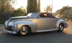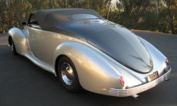 folding top, shaved hood,deck & side trim, smooth running boardsHOOD Shaved GRILLE Stock GRILLE INSERT Stock BUMPERS Briz RADIATOR Cross Flow BODY WORK Owner- Dave Iversen PAINT TYPE / COLOR PPG Concept 2000 Base coat and clear coat / Platinum Silver and Platinum Gray PAINTER Owner / Dave Iversen PIN STRIPING Ken HEADLIGHTS stock TAILLIGHTS stock MATERIAL / COLOR Leather / Ox blood burgundy CARPET Burgundy wool DOOR HANDLES shaved – remote openers WINDOWS GM Power Windows DASHBOARD Custom Fabricated – Dave Iversen INSERT GAUGES 91’Camaro STEREO / SPEAKERS AM/FM CD player AIR CONDITIONING aftermarket STEERING WHEEL Lincoln Banjo SEATS Cadillac/El Dorado UPHOLSTERER custom convertible top- Roy Powel / Interior-Owner