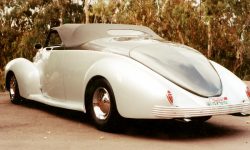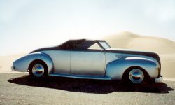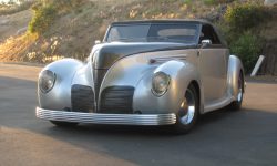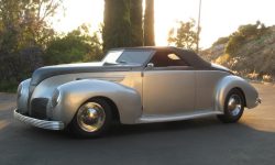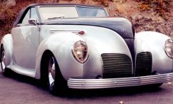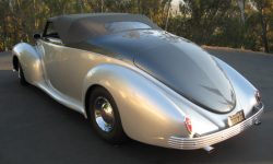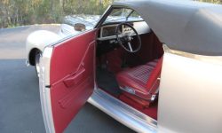 folding top, shaved hood,deck & side trim, smooth running boardsHOOD Shaved GRILLE Stock GRILLE INSERT Stock BUMPERS Briz RADIATOR Cross Flow BODY WORK Owner- Dave Iversen PAINT TYPE / COLOR PPG Concept 2000 Base coat and clear coat / Platinum Silver and Platinum Gray PAINTER Owner / Dave Iversen PIN STRIPING Ken HEADLIGHTS stock TAILLIGHTS stock INTERIORMATERIAL / COLOR Leather / Ox blood burgundy CARPET Burgundy wool DOOR HANDLES shaved – remote openers WINDOWS GM Power Windows DASHBOARD Custom Fabricated – Dave Iversen INSERT GAUGES 91’Camaro STEREO / SPEAKERS AM/FM CD player AIR CONDITIONING aftermarket STEERING WHEEL Lincoln Banjo SEATS Cadillac/El Dorado UPHOLSTERER custom convertible top- Roy Powel / Interior-Owner