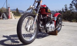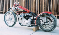 The frame on this bike was built using a 1936 Indian as a model. Late into the original build it was discovered that the top frame rail was to close to the heads and because of that, the only spark plugs that would fit were a type used in small lawnmowers. Dave finished hooking up supply lines and necessary linkage and got the bike started on those plugs for it’s initial (and slightly illegal) test run down a state highway. Jay and Dave had spent a great deal of time in their lives riding vintage bikes and this Indian’s power and speed impressed them both.