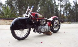 El Mirage’s racing season is from May-Nov. and in the past three years only one meet has been missed. The Indian has also raced all 3 years at Bonneville’s Speed Trials by Bub event and in 2006 the trip was made for the first time to Bonneville’s Speedweek. In over 70 plus runs this bike has never failed to complete a pass and it never fails to draw a crowd. Since the release of the movie “The Worlds Fastest Indian” interest has spiked and we can proudly bill this bike as not the worlds slowest Indian!